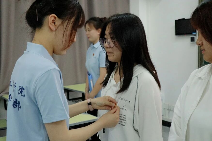 随后,团委书记蔡雨杉宣读新团员名单。老团员代表为新团员郑重佩戴团徽,蔡雨杉为新团员颁发团员证。全体新团员面向团旗庄严宣誓,铿锵誓言彰显其投身共产主义事业的坚定信念。新团员代表刘梦梦发言时,向团组织及师长表达诚挚谢意,并代表全体新团员郑重承诺:将以入团为新征程,筑牢信仰之基,勇担时代重任,为学院发展和共青团事业贡献青春力量。
