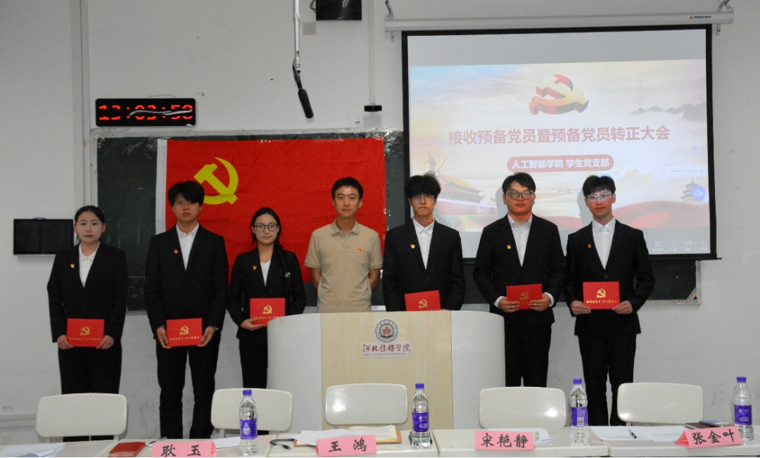为进一步巩固党员队伍建设的基础,增强党组织的凝聚力和战斗力,确保党员队伍的先进性和纯洁性,6月4日中午12点,人工智能学院学生党支部在兴安校区A-409教室召开接收预备党员暨预备党员转正大会。人工智能学院党总支副书记王鸿,学生党支部书记郑艾明,思政辅导员耿玉、宋艳静、张静、张金叶、郝伟凯参加本次大会。本次会议由人工智能学院学生党支部丁锐同志主持。
