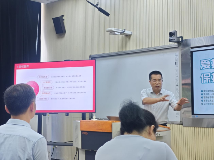 王教授还讲解了高校建设智库资政的巨大优势。王教授指出高校可凭借学科为依托,以优势学科为基础,研究可具有深厚的理论支撑;高校具有人才密集的优势,汇聚教授、硕博士生等高水平研究力量,形成学术梯队;高校受行政约束较少,具有相对独立性,可提出更具批判性的政策建议;高校的智库资政建设有利于将智库研究融入教学,培养具有思辨、政策分析能力的学生,实现高层次的产教融合;高校的开放协同性,有利于以校企合作,校地共建等方式整合资源。