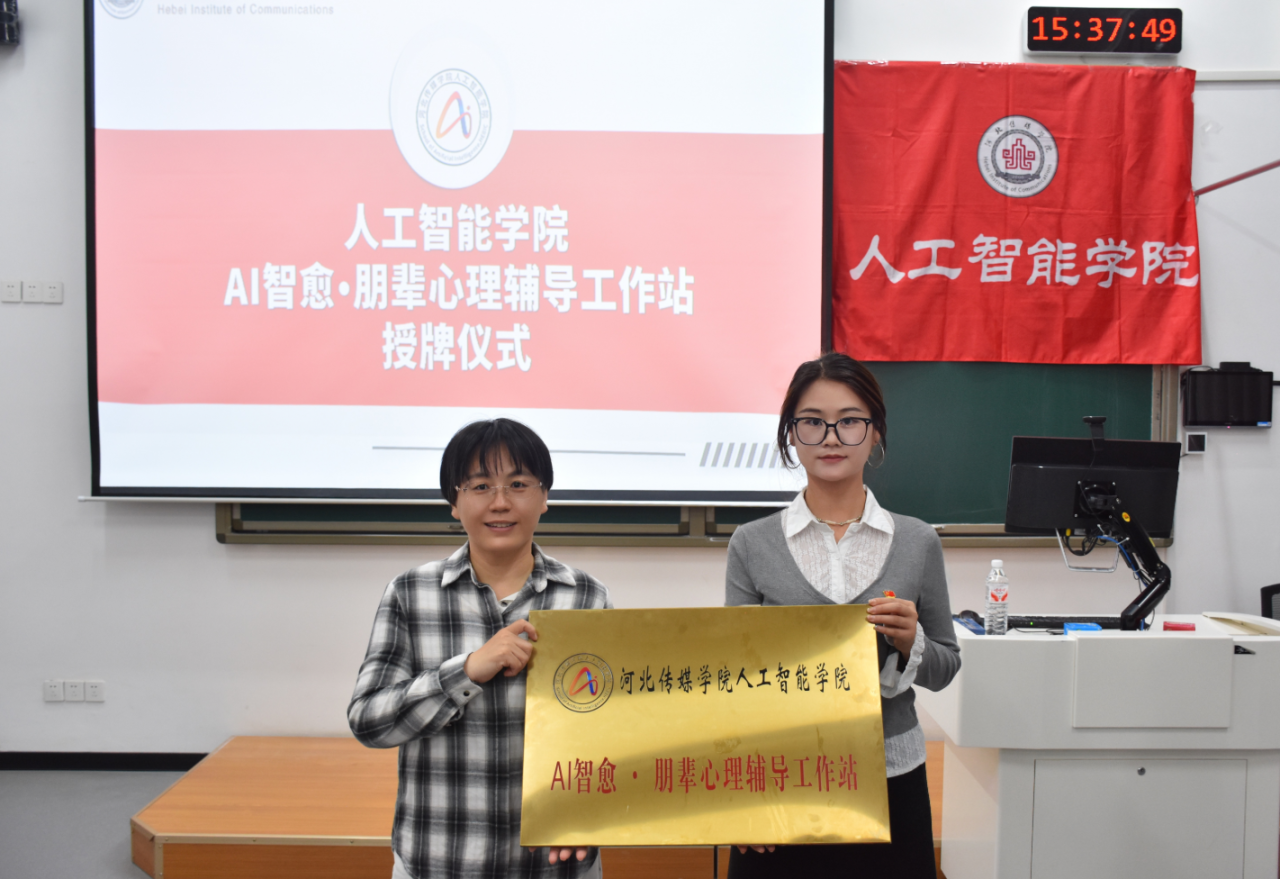 随后,刘增娥副教授与我院心理工作负责人张金叶老师共同为人工智能学院“AI智愈·朋辈心理辅导工作站”启动。