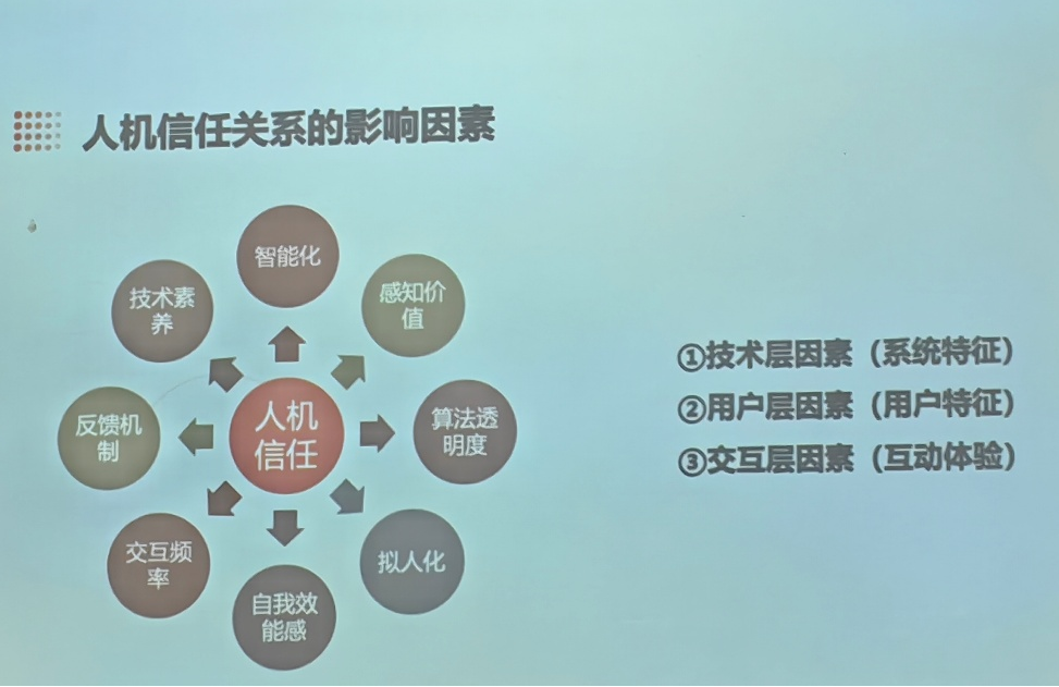 讲座中,钟老师介绍了经典的传播学研究方法、深度思考结合AI进行传播学研究的方法创新。以人工智能深度介入信息生产的背景下,AI主播的公众信任成为影响传播效果的核心变量的角度阐述了其团队开展的“AI主播可信度形成机制”研究案例。用数据“透视”人机信任关系,系统拆解了量化研究的完整路径——理论建模:基于媒介等同理论(Media Equation)与来源可信度模型,构建“AI主播信任影响因素”假设框架;操作化设计:将抽象概念(“亲和力”“专业性”)转化为可测量的多维度量表;数据采集与建模:通过大样本问卷调查与结构方程模型(SEM),验证用户认知、情感与行为意向的因果链条。